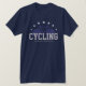 A cool tee-stamp design of a graphic blue bike with stars and with the editable words: CYCLING, two wheels are better than four...
