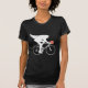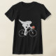 Bicycle bride has a female cyclist in white with a flowing bridal veil attached to her helmet and a bouquet of flowers in her hand.