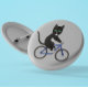 A black and white cat having a ride on his bicycle, some cats choose to get around by bicycle, this one does. If you know of a tuxedo cat that likes to get to his meetings to do his cat business, this design is for you.