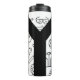 insulated bottle with drawing of cyclist components, parts and accessories. ( bezel / helmet / padlock / counter / pedals / dresses / keys / tools / multitools / saddle / fork / pignon / gloves / lights / chain / pedal / gourde )