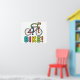 Cycling Cyclist design shows a cool stick figure cyclist riding a racing bicycle at full speed with large BIKE lettering below. Hand drawn cycling graphic for enthusiastic pedal pushers.