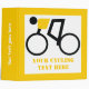 Cyclist riding his bicycle custom 3 ring binder that showcases a minimalist icon of a black cycling silhouette wearing yellow top and your text on white background with yellow border. The perfect gift for those bicycling athletes or just biking lovers in your life.