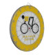 Cyclist riding his bicycle dart board that showcases a minimalist icon of a black cycling silhouette wearing yellow top and your text on white background with yellow border. The perfect gift for those bicycling athletes or just biking lovers in your life.