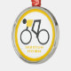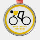 Cyclist riding his bicycle cmetal ornament displayig a minimalist icon of a black cycling silhouette wearing yellow top and your text on white background with yellow border. This cool design is a template and it is completely customizable. The perfect gift for those bicycling athletes or just biking lovers in your life.