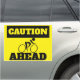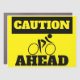 Create awareness with this safety sign that has the word caution in yellow set on a bright yellowing background that has the silhouette of a cyclist cycling which warns motorists that they must reduce and keep a distance from the cyclists.