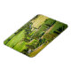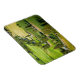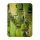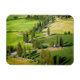 Rectangular photo magnet with a zigzag winding, cypress tree lined road through the green fields in Monticchiello, Tuscany in Italy.