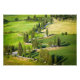 Photo print of a zigzag winding, cypress tree lined road through the green fields in Monticchiello, Tuscany in Italy.