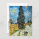 A fine art postcard with Cypress Against a Starry Sky (1890), by Vincent Van Gogh (1853-1890). A Dutch Post-Impressionist painter. A couple walking on a path with a cypress tree and wheat fields in the background against a blue sky.