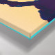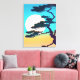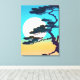Canvas in a Japanese inspired silhouette of a cypress tree, framing a full moon, against an aqua and coral orange sky