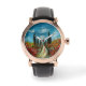 CYPRESS TREES AND POPPIES IN TUSCANY ROUND WATCH