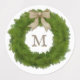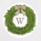 This label has a pretty evergreen cypress wreath with a ribbon tied in a bow. Customize it with your monogram or any letter of your choice.