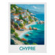 Illustrated poster of Cyprus with its white houses by the sea and its turquoise waters. A wall decoration ideal for escaping and traveling from home.