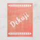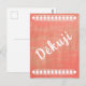 Děkuji! Czech thank you postcard with white diamond pattern on a textured salmon coral background.