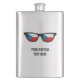 The product is a good size and came exactly as it was pictured. The lid is not attached to the flask, which could be dangerous on drunken nights... The print came out surprisingly well and looks very sharp. Would definitely recommend.