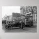 Old photo of D.C. traffic cop standing under umbrella with antique car and Union Station streetcar, Washington, D.C., 1913.
