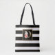 D Gold Floral Monogram | Black White Gold Stripes Tote Bag
