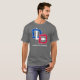 My 11 yo wore adult XL (5’7” 165#). The 8yo is small framed. She wore adult small and tied it in the back. Grandma wore adult large with long sleeve shirt underneath. Tall girl adult medium. Dark haired male adult large. Good quality dark Heather gray, Gildan brand shirt. -it was next up from basic choice and cost about $20 per shirt. Not too thick or thin. Washed and dried well, no major shrinkage. Not see-through. Can wear a bra under it fine. Screen print is just as shown and well done, front and back.