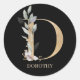 D Monogram Floral Personalized Classic Round Stick Sticker