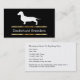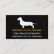 Classy dachshund dog breeder business cards with graphic image of a dachshund silhouette, gold colored design elements that ad a touch of class in a two side design that includes two side printing. Organize your business detail information the way you want on both sides.