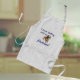 The apron is of very good quality. I used it while icing cookies. The dark colored icing washed off of the apron very well! The neck strap is sturdy and easy to resize on the adult size apron. The print was clear and well defined. I am glad I was able to personalize with name.