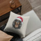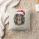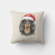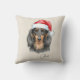 Add a special touch to your Christmas tree with this custom pet portrait throw pillow! This design features a hand drawn watercolor longhaired dachshund with a cute Santa hat. Personalize with your pet's name, or give as a gift to a pet lover!