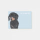 Personalized pop art dachshund post it notes featuring a cute black tan sausage dog on a pastel blue background that can be changed to any color, and your name.
