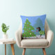 Dachshund Decorating Christmas Tree in forest Throw Pillow