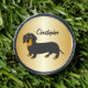 Golf divot tool dachshund design that you can customise with the name of your dog. Should you require any help with customising then please contact us through the link on this page. Dachshund design personalised golf divot tool