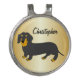 Golf ball marker hat clip dachshund design that you can customise with the name of your dog. Should you require any help with customising then please contact us through the link on this page. Dachshund design personalised golf ball marker hat clip