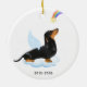 Celebrate your best friend with a custom Dachshund angel memorial ornament. This Dachshund christmas memorial ornament features a watercolor Dachshund dog with angel wings and a rainbow and shooting gold star. Personalize with name front, dates back . This Dachshund memorial ornament is a perfect dog remembrance keepsake or pet christmas memorial keepsake. COPYRIGHT © 2022 Judy Burrows, Black Dog Art - All Rights Reserved. Dachshund Angel Dog Personalized Pet Memorial Ceramic Ornament