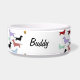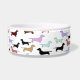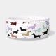 Cute bowl for your pet to eat or drink out of. It features lots of little dachshund dogs all over it in many colors. There is a space to customize your pet's name.