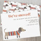 Featuring a fun and quirky Dachshund dog, perfect for dog lovers who want to share their exciting news with a touch of humor. The front features a whimsical illustration of a Dachshund wearing bright and playful striped knitwear. The reverse is designed to match, with a Dachshund pattern to create a cohesive look. Whether you're moving across town or across the country, this announcement is a great way to keep your friends and family updated on your new address. Get ready to wag your tail in excitement!