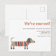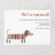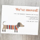 Featuring a fun and quirky Dachshund dog, perfect for dog lovers who want to share their exciting news with a touch of humor. The front features a whimsical illustration of a Dachshund wearing bright and playful striped knitwear. Whether you're moving across town or across the country, this announcement is a great way to keep your friends and family updated on your new address. Get ready to wag your tail in excitement! Original art by Nic Squirrell.