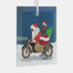 A Santa claus riding bike delivering Christmas tree and Dachshund dog as gift is a perfect Christmas gift idea for someone who love this dog breed.