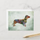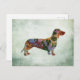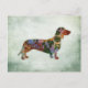 Dachshund Dog with a shabby floral design profile over a textured painted green background. A lovely gift for a pet owner.