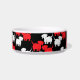 This is a heavy, durable bowl decorated with Tibbies of many colors, the perfect size for hungry/thirsty Tibs. The design is interesting and printing clear.
