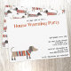 Featuring a fun and quirky Dachshund dog, perfect for dog lovers who want to share their exciting news with a touch of humor. The front features a whimsical illustration of a Dachshund wearing bright and playful striped knitwear. The reverse is designed to match, with a Dachshund pattern to create a cohesive look. Whether you're moving across town or across the country, this fun housewarming party invitation is sure to warm hearts as well.