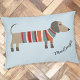 Cute little Dachshund Sausage or Wiener dog in cosy knitwear on a blue background. Original art by Nic Squirrell. Change the name to personalize.