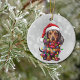 Dachshund Dog Wrapped in Christmas Lights Ceramic Ornament