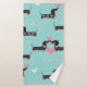 Dachshund dogs in love and hearts seamless pattern bath towel