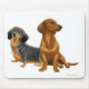 Airbrush painting of two little dachshund dogs, also known as wiener dogs or doxies, by Carolyn McFann.