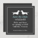 Dachshund Silhouettes with Heart Personalized Wiener Dog Lover's Square Wedding Invitation. A fun announcement for an engaged couple that loves weenie dogs. Personalize this original wedding invite with the happy couple’s name and wedding day information. Visit Jenn’s Doodle World for even more wedding planning products featuring this cute Doxie design and more dog breeds wedding invitations.
