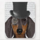 Dachshund, Formal Hound and Hat by FabFunky. Features a dapper dachshund wearing a fun top hat and monocle. | 191404D