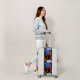 The luggage itself is awesome. So much utility for a carry-on bag. Lots of zippered pouch compartments to keep everything from getting everywhere. And it has a TSA approved lock and a dust cover! Love it. The printing is terrific. Love the way it wraps around the top and bottom. So happy the bumpers, wheels and handle color matches the design perfectly. She's gorgeous.