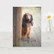 "Missing you" greeting card features a beautiful long-haired red and black dachshund, sitting beside a garden gate, waiting for the return of someone special. Great for someone you know that needs a friendly face and that you are thinking of them. Sentiment inside says: "and thinking of your smile that brightens my day". Text and images can be customized to suit the recipient.