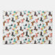 Cute birthday party dachshund dogs with black, tan and dapple coats dressed in cute birthday outfits with balloons, cake and confetti pattern.