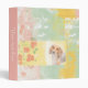 This beautiful binder has a long haired dachshund dog peeking out of a pretty pastel patchwork in a watercolor effect. The spine has customizable text.
