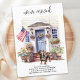 Announce your move to family and friends with our patriotic moving announcement featuring a beautiful watercolor painting of a Dachshund dog, modern house with a blue door and the American flag proudly displayed on the front porch. This announcement is perfect for dog lovers and anyone looking to announce their new address. With its red, white, and blue color scheme, this announcement is a great way to show your love for the USA while sharing your exciting news. Let everyone know that "We've moved!" and invite them to come visit and meet your best friend in your new home. COPYRIGHT © 2023 Judy Burrows, Black Dog Art - All Rights Reserved. Dachshund Patriotic Personalized Pet Dog Moving Announcement