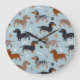 Dachshund Paws and Bones Pattern Blue Large Clock