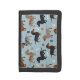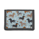 Dachshund Paws and Bones Pattern Blue Trifold Wallet